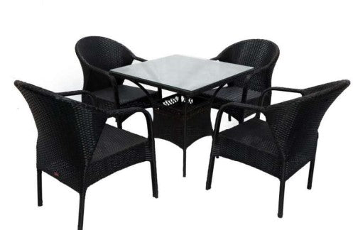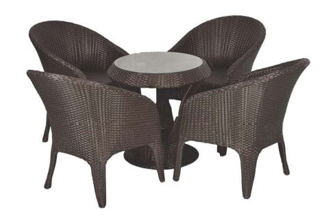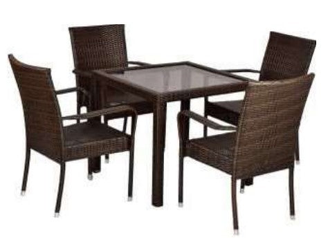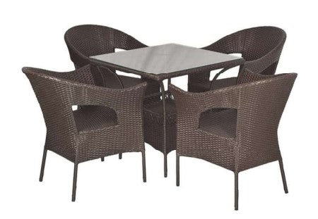 Brown Outdoor Furniture Set with 4 Chairs and Glass Top Table