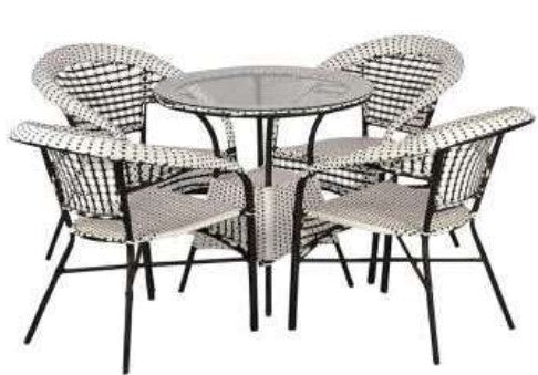 Elegant Black and White Outdoor Furniture Set with Four Chairs and Glass Top Table